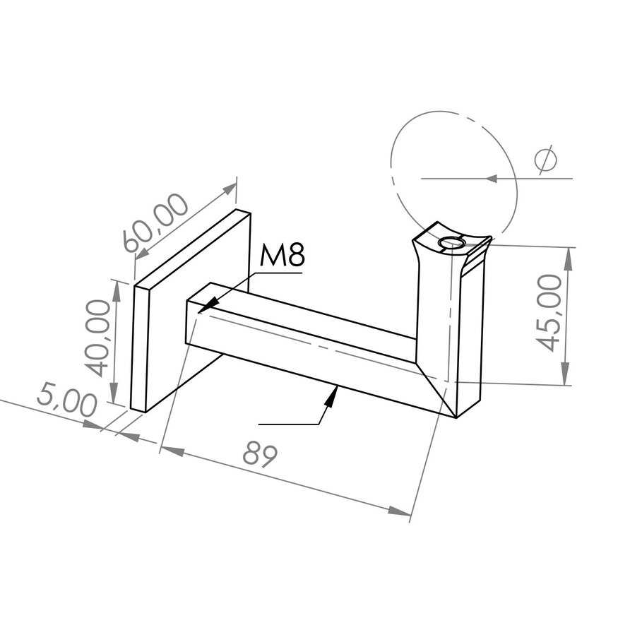 Bevestiging aan trapleuning: Met 1 bout. Deze wordt NIET meegeleverd in het geval van een "losse drager", aangezien de keuze voor de juiste bout afhangt van de specifieke trapleuning (en dit onbekend is).
