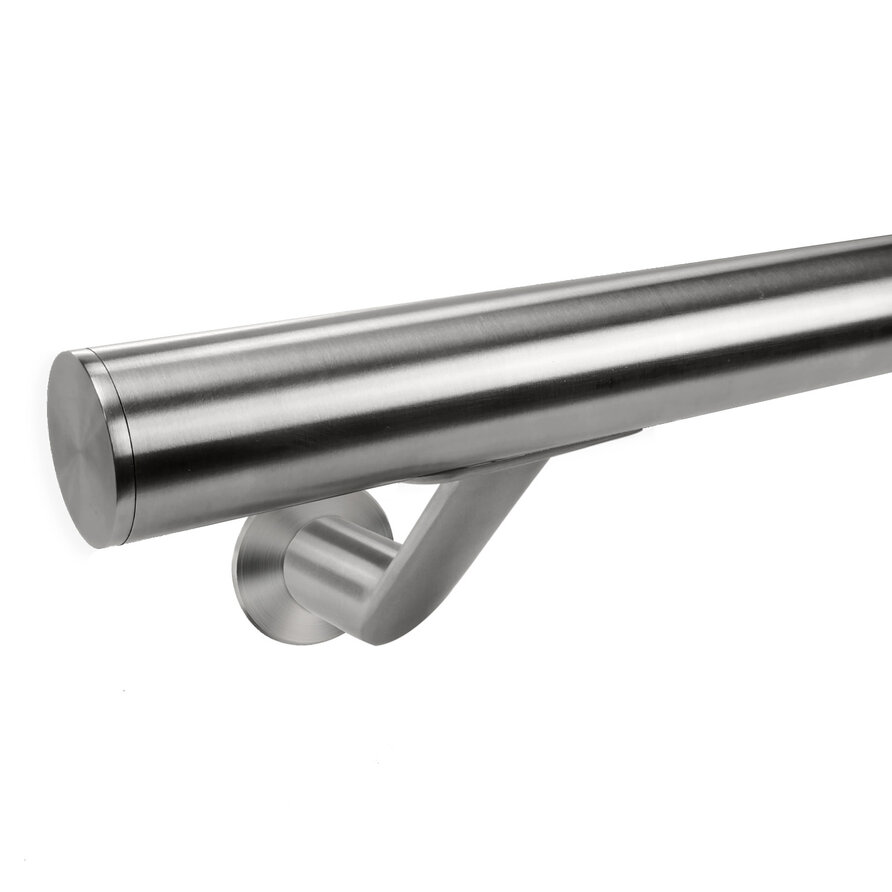 RVS trapleuning - rond - met trapleuning houders type 7 luxe + bevestigingsmaterialen - op maat - van 30 t/m 595 cm - geborsteld RVS 304. Een ronde RVS trapleuning van geborsteld RVS 304 met een diameter van 42,4 mm. Een klassieke ronde leuning, met de moderne look van roestvrij staal: Een toegankelijke trapleuning van RVS, geschikt voor een breed scala aan interieurstijlen.