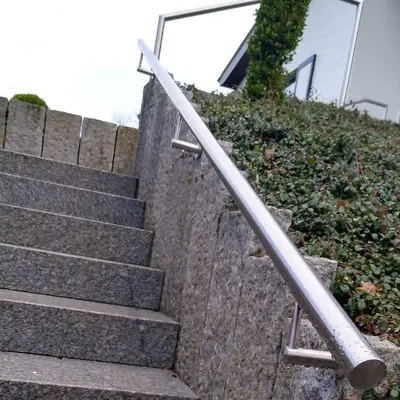 RVS trapleuning - speciaal voor buiten - rond - op maat - van 30 t/m 595 cm - geborsteld RVS 316 (voor buitengebruik). Een ronde RVS trapleuning van geborsteld RVS 316 (speciaal voor buiten) met een diameter van 42,4 mm. Een klassieke ronde leuning, met de moderne look van roestvrij staal: Een toegankelijke trapleuning van RVS, geschikt voor een breed scala aan tuininrichtingen. Voor buitenleuningen bieden wij bewust alleen het hoogwaardige 316 RVS aan. Deze RVS "soort" biedt extra bescherming tegen de weersinvloeden van buiten.