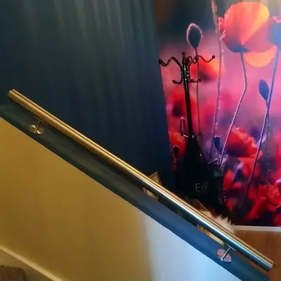 De trapleuninghouder type 5 is een moderne steun met een ronde vormgeving en strakke montage (met stokeind) zonder zichtbare bevestigingsschroeven. Deze leuningdrager bevindt zich in een directe lijn met de trapleuning, wat zorgt voor een extra moderne look. Uw leuning wordt - in eigen werkplaats door ervaren vakmannen - op maat vervaardigd. De trapleuning wordt tot op de mm in de gewenste lengte gezaagd, voorgeboord & naar wens afgewerkt. Dit doen wij compleet in eigen beheer, met veel plezier & aandacht voor detail. U ontvangt deze metalen trapleuning met leuninghouders type 5, inclusief de juiste bevestigingsmaterialen.