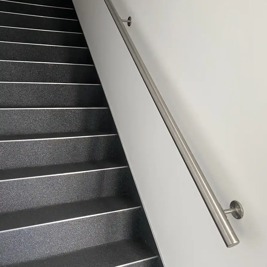 RVS trapleuning - rond - met trapleuning houders type 4 + bevestigingsmaterialen - op maat - van 30 t/m 595 cm - geborsteld RVS 304. Een ronde RVS trapleuning van geborsteld RVS 304 met een diameter van 42,4 mm. Een klassieke ronde leuning, met de moderne look van roestvrij staal: Een toegankelijke trapleuning van RVS, geschikt voor een breed scala aan interieurstijlen. Deze leuning(drager) is geschikt voor verticale & horizontale plaatsing. Denk hierbij bijv. aan een railing op een muurtje, zoals een stenen (trap)balustrade, of als extra verticale 'handgreep' bij uw trap.
