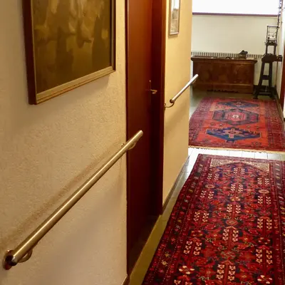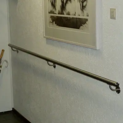Bevestiging aan trapleuning: Met 2 schroeven. U ontvangt - per drager - 2 RVS bolkop inbusschroeven m5.