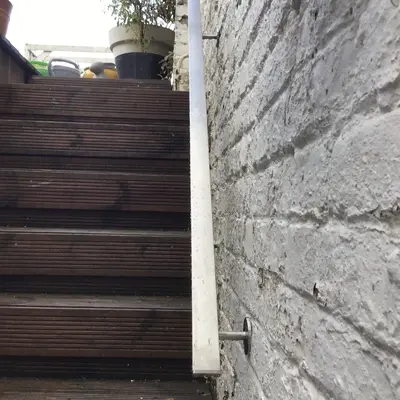 Een slanke RVS trapleuning voor buiten met moderne type 3 leuningdragers. De 40x10 mm leuning past mooi in een moderne & strak tuinontwerp, wordt op maat vervaardigd en geleverd incl. houders + bevestigingsmaterialen. Lees meer