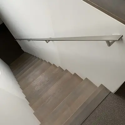 Een slanke RVS trapleuning met moderne type 11 leuningdragers. De 40x10 mm leuning past mooi in een modern & strak interieur, wordt op maat vervaardigd en geleverd incl. houders + bevestigingsmaterialen. Lees meer