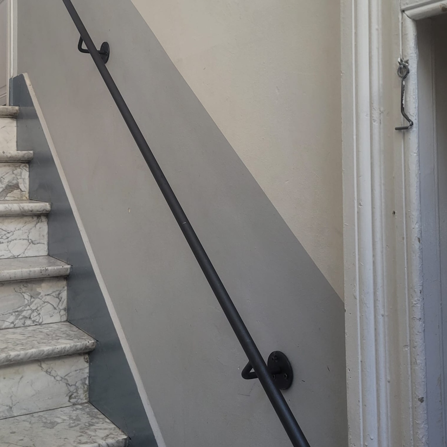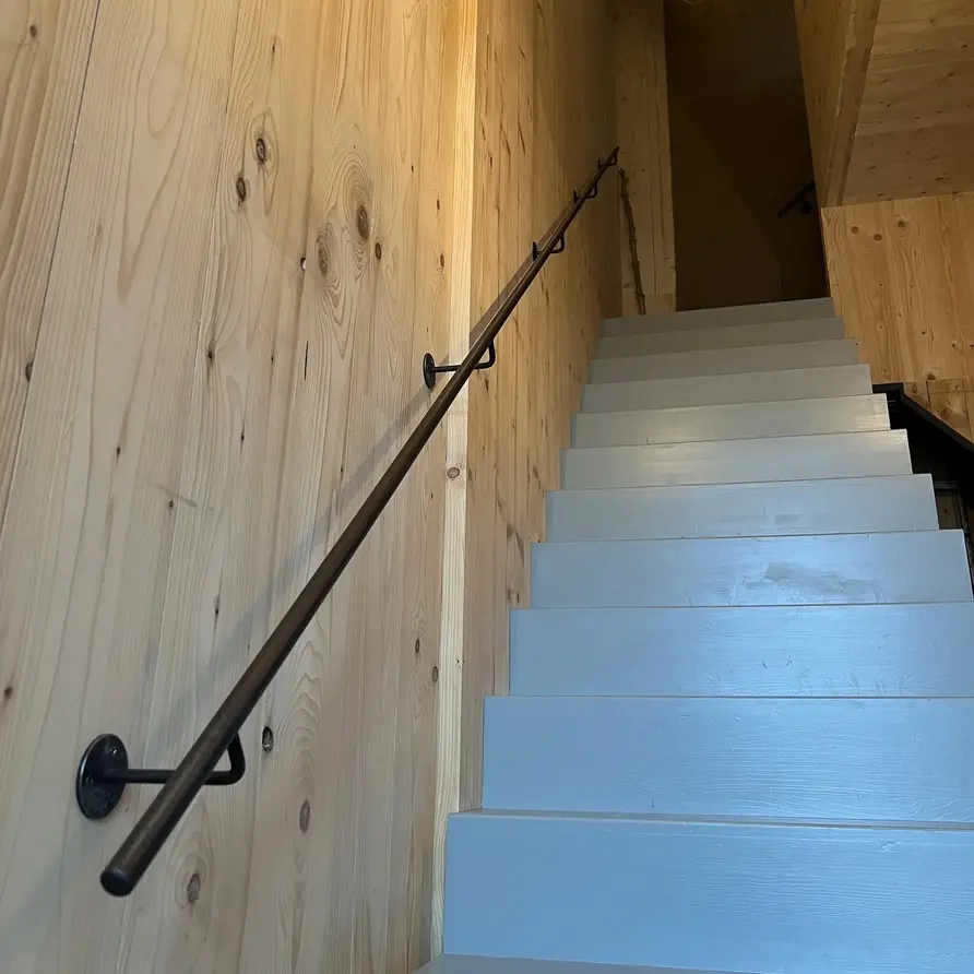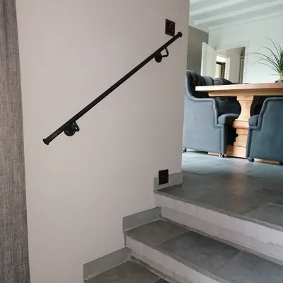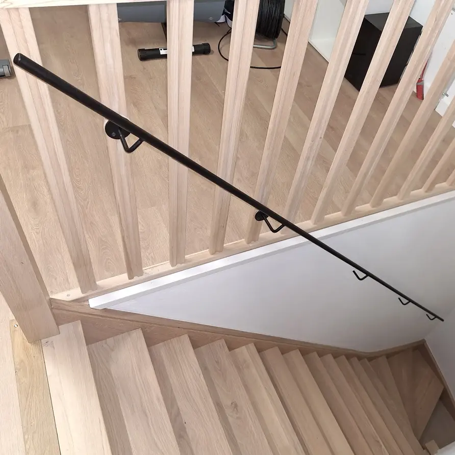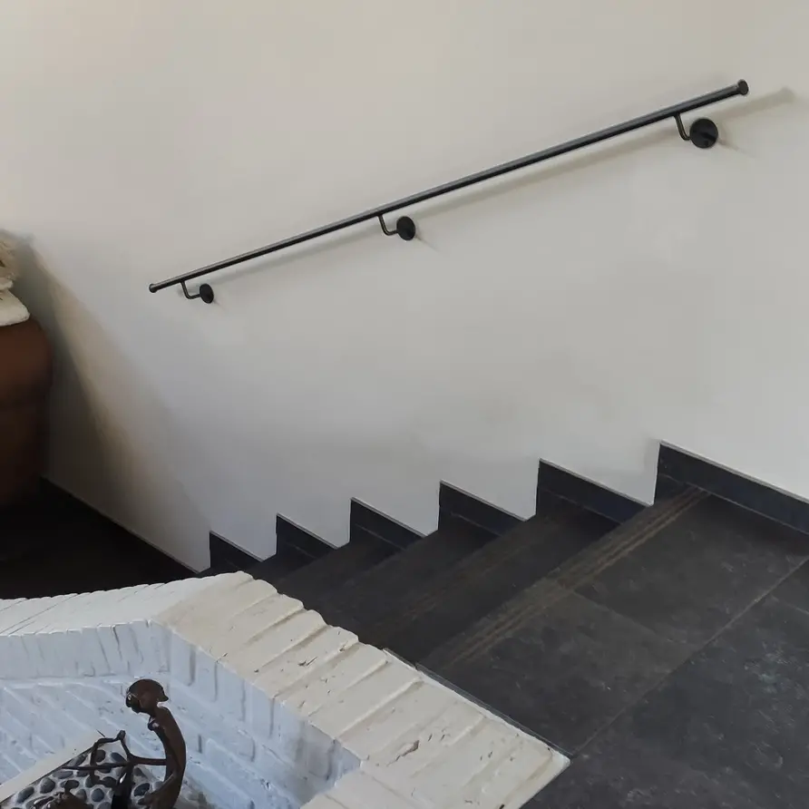 Bevestiging aan trapleuning: De steunen zijn aan de leuning gelast, dit verzorgen wij voor u!