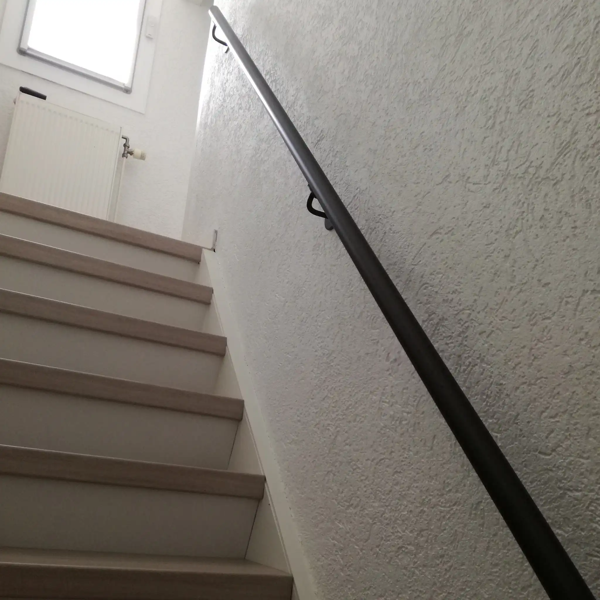 Stalen trapleuning - rond - op maat - ruw staal (transparant gecoat)