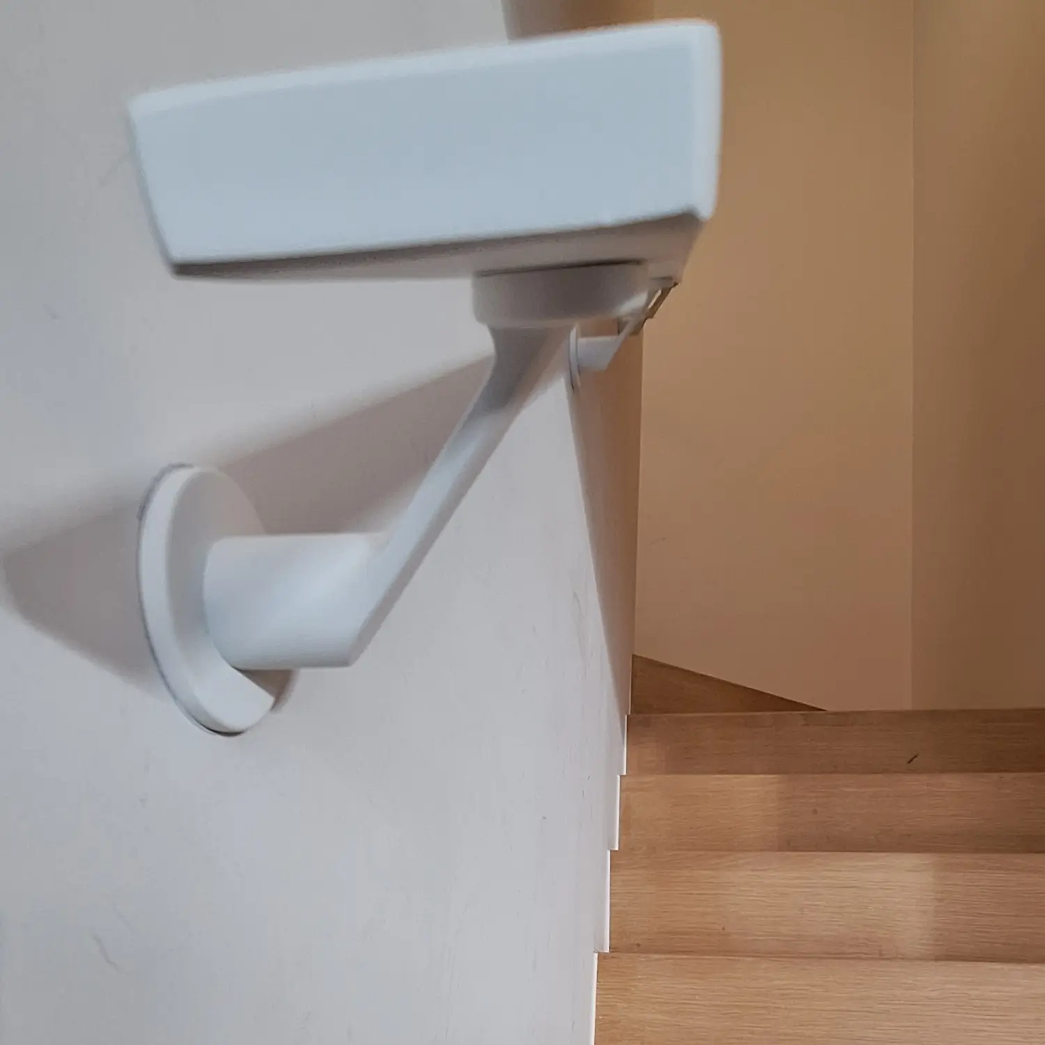 Bevestiging aan de leuning: Met 2 schroeven. U ontvangt - per drager - 2 witte bolkop inbusschroeven m5.