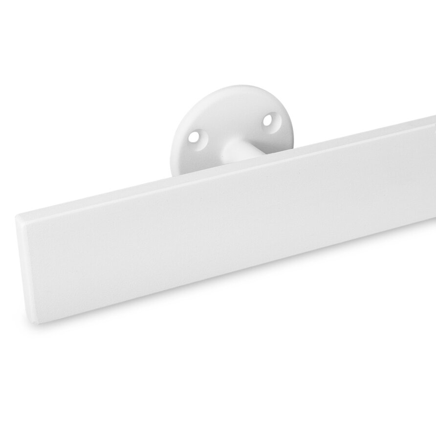 Trapleuning wit gecoat - rechthoekig (50x10 mm) - met trapleuning houders type 4 + bevestigingsmaterialen - op maat - van 30 t/m 595 cm - witte fijnstructuur poedercoating - RAL 9016, 9010 & 9001. Een rechthoekige trapleuning wit gecoat van 50x10 mm. De "vierkante" leuning is voorzien van een witte fijnstructuur poedercoating, waarbij u kunt kiezen tussen RAL 9016, 9010 & 9001. Een bijzondere witte trapleuning, ruimtelijk & fris, ideaal geschikt voor een modern & strak interieur. Deze leuning(drager) is geschikt voor verticale & horizontale plaatsing. Denk hierbij bijv. aan een railing op een muurtje, zoals een stenen (trap)balustrade, of als extra verticale 'handgreep' bij uw trap. LET OP: Bij de 50x10 mm trapleuningen worden de uiteinden standaard dichtgelast en afgewerkt, voor een luxe & strak afgewerkte leuning.