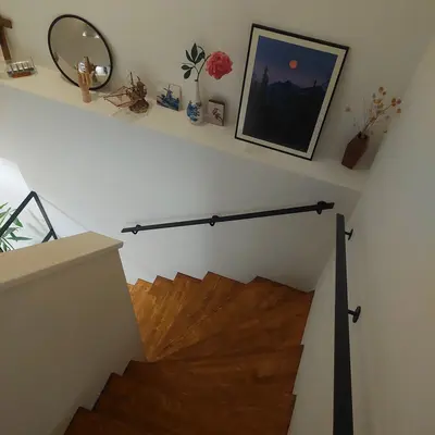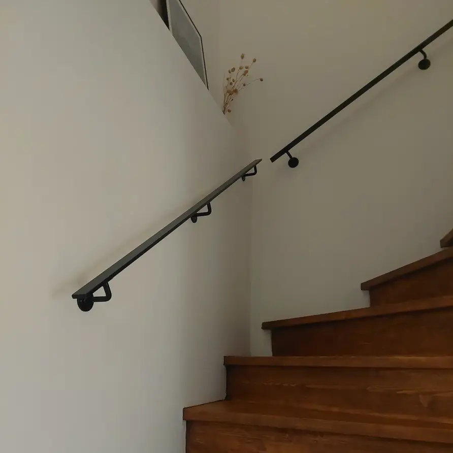 Een slanke rechthoekige trapleuning zwart gecoat met toegankelijke type 1 leuningdragers. Deze zwarte 40x10 mm leuning past prachtig in een moderne interieurstijl, wordt op maat vervaardigd en geleverd incl. houders + bevestigingsmaterialen. Lees meer