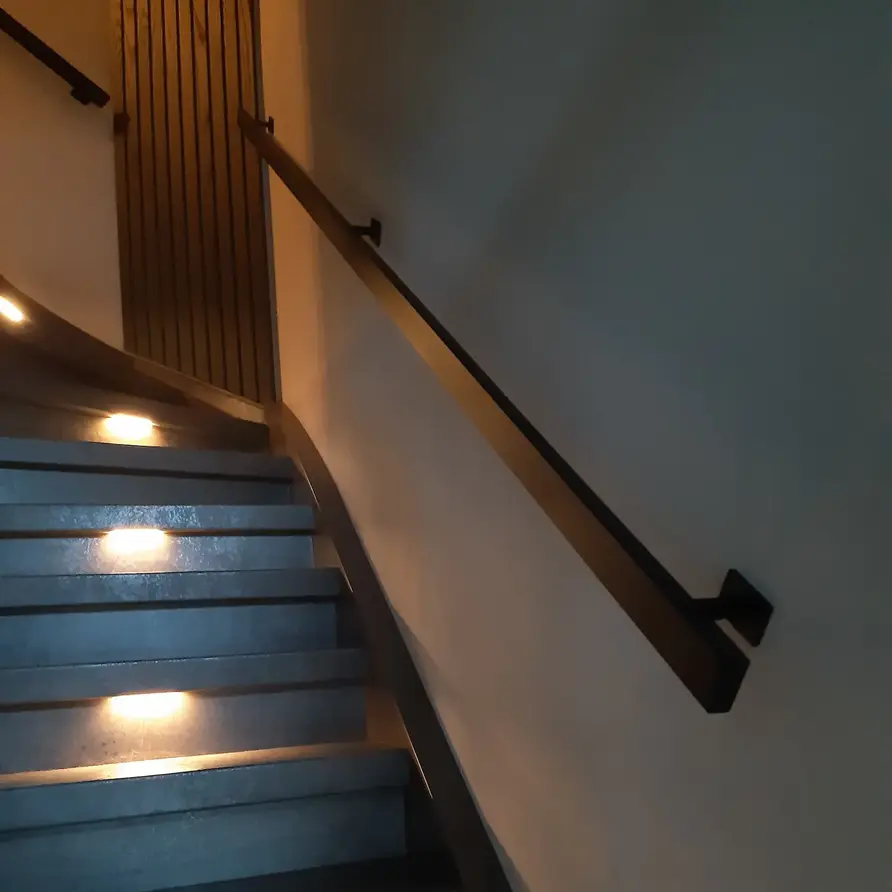 Een unieke rechthoekige trapleuning zwart gecoat met strakke type 16 leuningdragers. Deze zwarte 50x20 mm leuning past prachtig in een moderne interieurstijl, wordt op maat vervaardigd en geleverd incl. houders + bevestigingsmaterialen. Lees meer